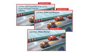 Motor off into an extraordinary new way to read with Mater and Lightning McQueen. Hear words sounded out, and expand vocabulary skills with an audio-visual dictionary. Shake up traditional reading fun to learn how words form sentences. Accelerate into action with fun gameplay that moves the adventure along. To keep up to speed with young readers, reading levels adjust automatically, allowing kids to read at their own pace. A visual dictionary linked to words on each page provides vocabulary expansion opportunities, and games involving the arrangement of words and sentence structure promote reading comprehension.